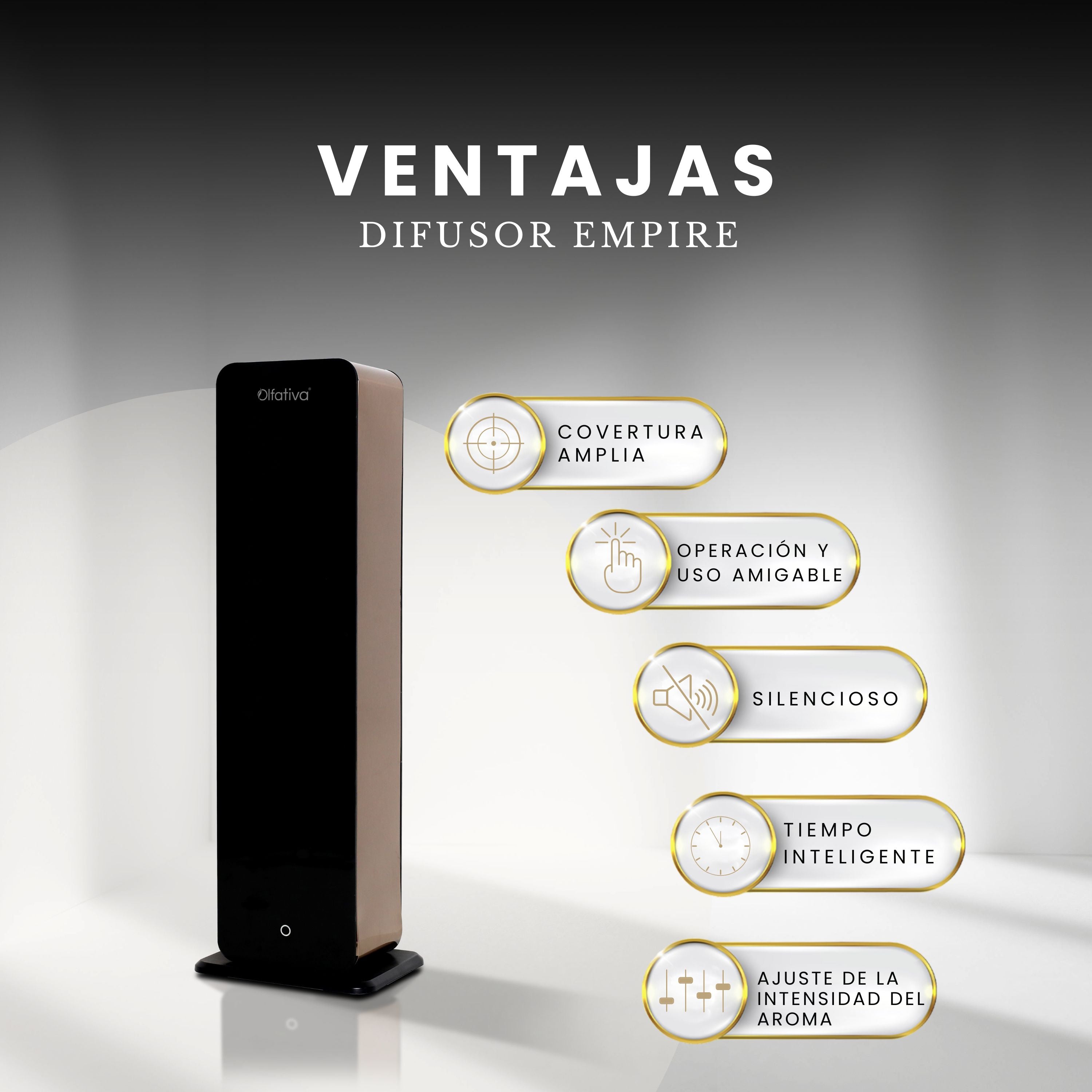 Tecnología de difusión en frío para una aromatización amplia, uniforme y constante.